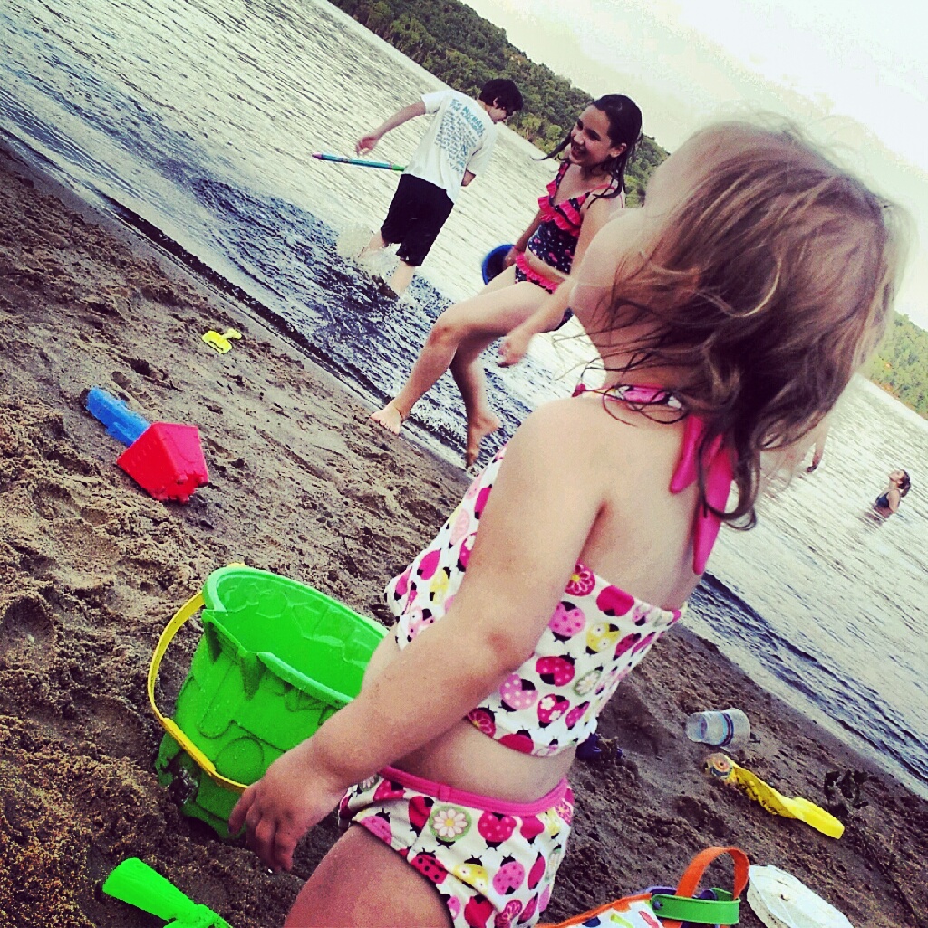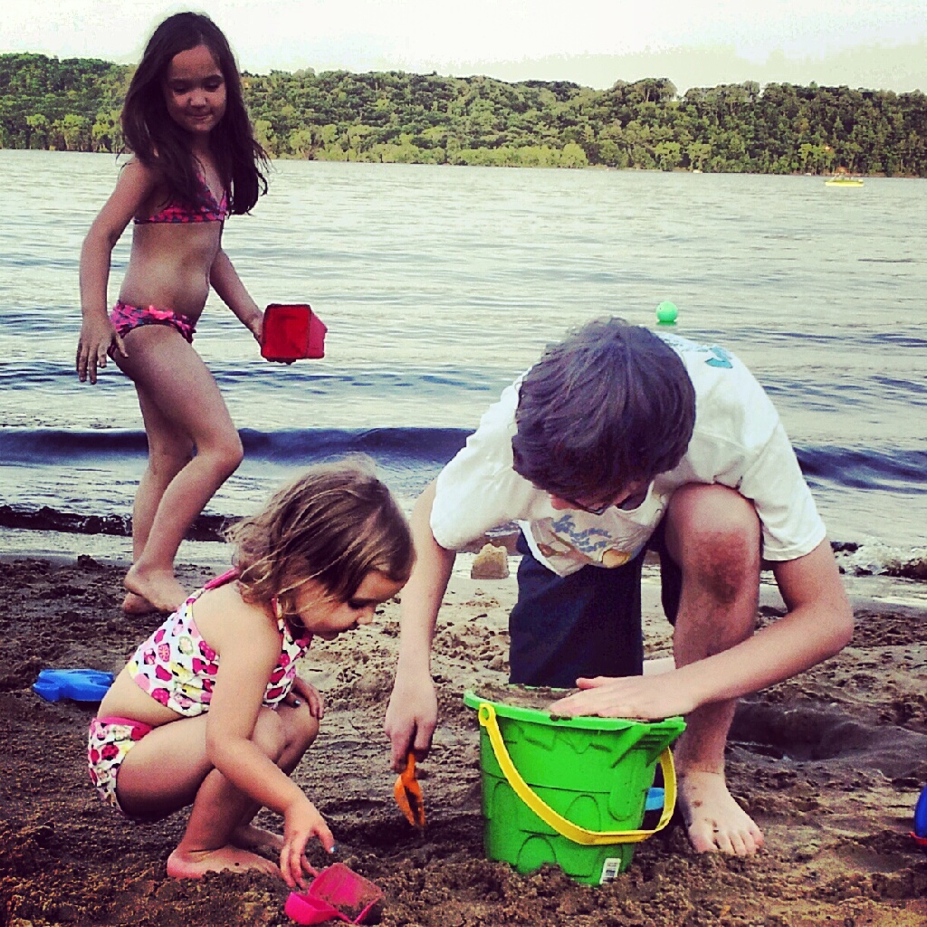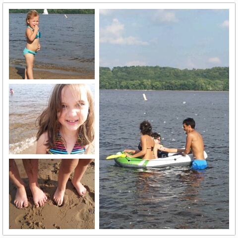 After being here for a few weeks, Sean stumbled on quite a find; the Lake St Croix Beach, on the St. Croix River. Our family quickly fell in love with the sandy beaches and beautiful scenic views. It was quite a nice getaway for a day trip with the kids and now has become part of our regular summer routine. The girls love packing up their beach toys, inflatables, and snacks and spending a day that includes burying someone in the sand, sandcastles with Daddy and skipping rocks.